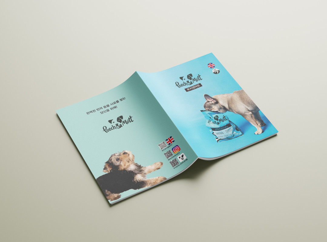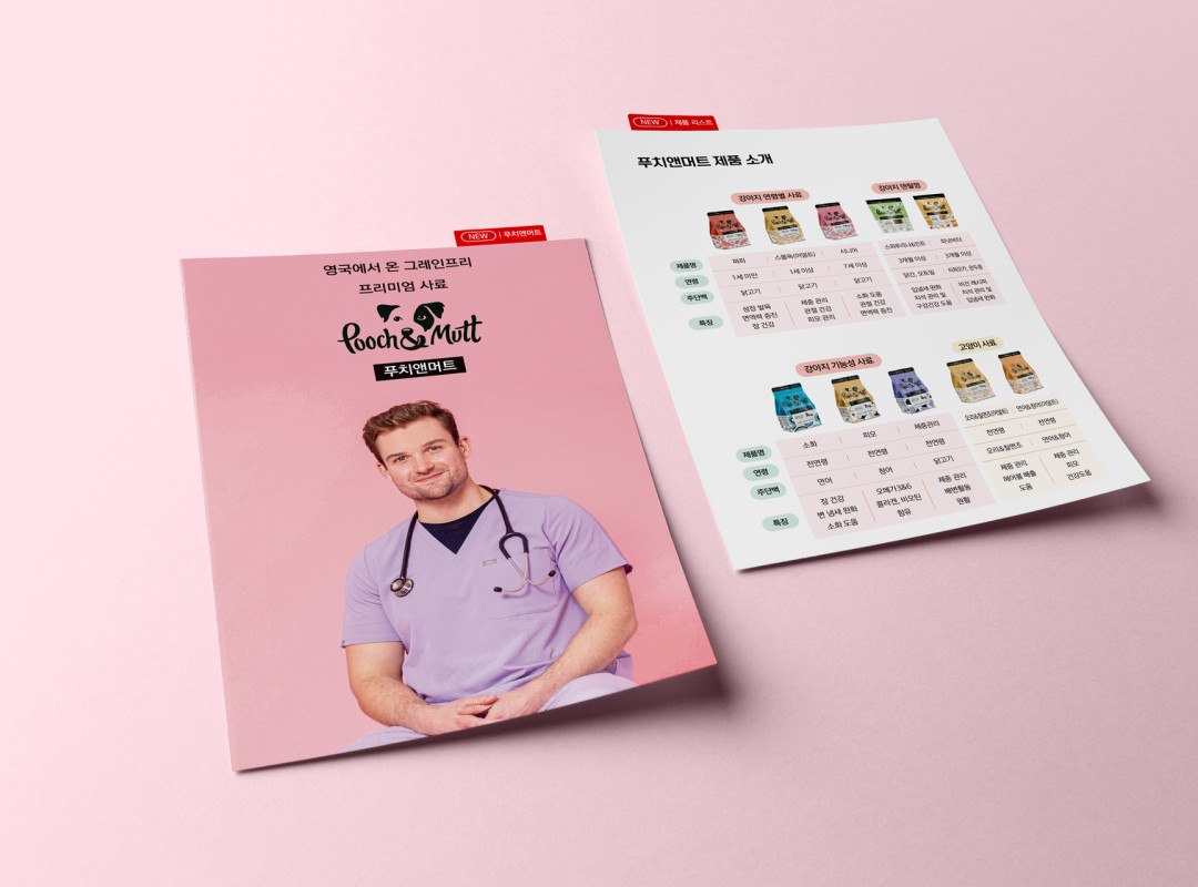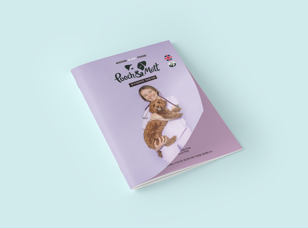 프로젝트 개요클라이언트: 푸치앤머트 (Pooch & Mutt)프로젝트: 수의사 처방사료 라인업 소개 및 영업용 브로슈어 디자인제작 사양: 151×213mm, 8페이지 (표지..