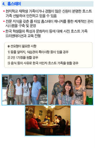 현지학교 재학생 가족이거나 경험이 많은 신원이 분명한 호스트